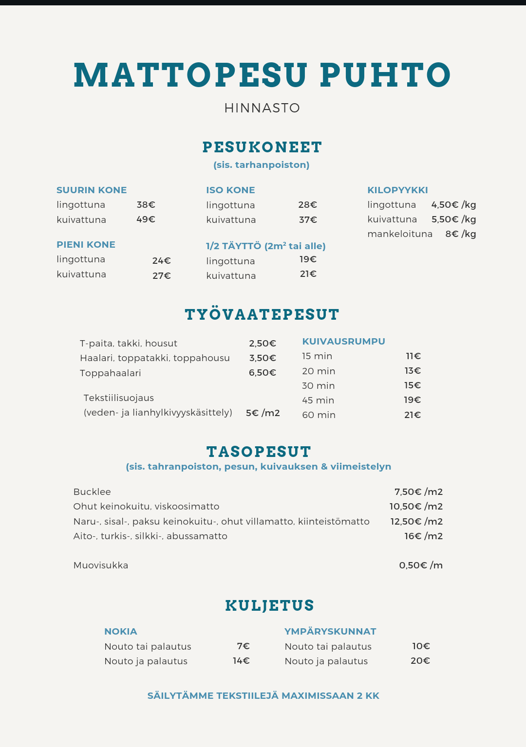 Mattopesu Puhto, Yrittäjäkatu 9, 37100 Nokia, Puh. (03) 342 5593